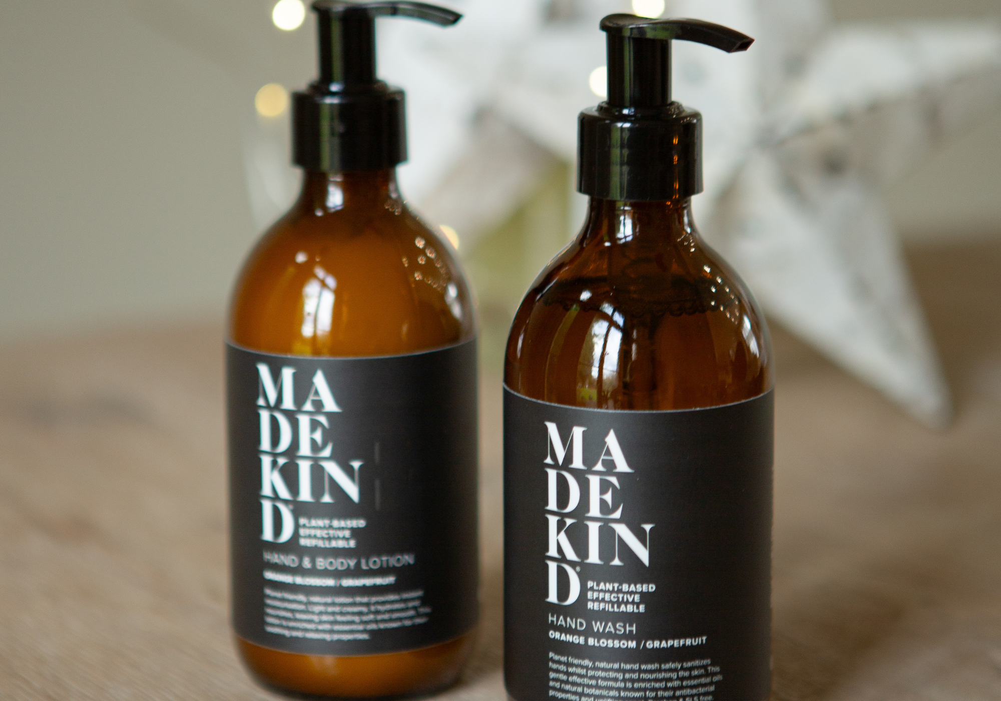 Luxurious, natural hand wash and hand lotion made with botanicals and essential oils. Nourishing hand soap and deeply moisturising hand lotion In a choice of fragrance; Lavender & Geranium or Orange Blossom & Grapefruit. All MadeKind products are made in small batches in the Peak District, and come in stylish glass bottle.